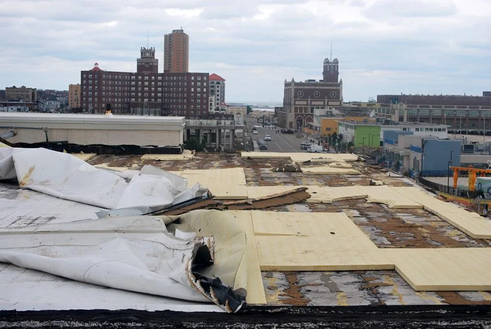 Roof storm damage occurs when severe weather, like high winds, hail, or heavy rain, causes significant harm to a roof's structure.